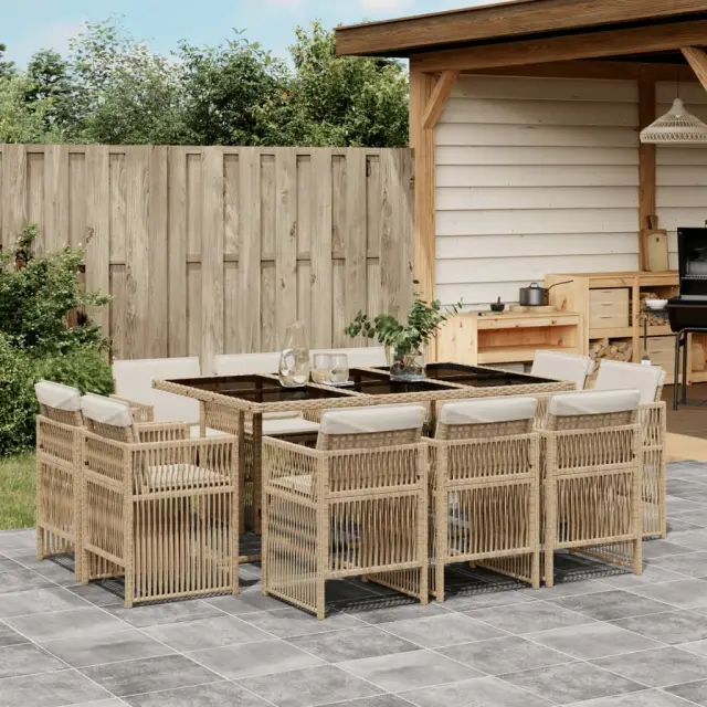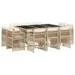 vidaXL Vrtna jedilna garnitura 11-delna z blazinami bež poli ratan