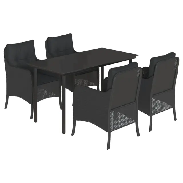 vidaXL Vrtna jedilna garnitura 5-delna z blazinami črn poli ratan