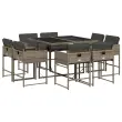 vidaXL Vrtna jedilna garnitura 9-delna z blazinami siv poli ratan