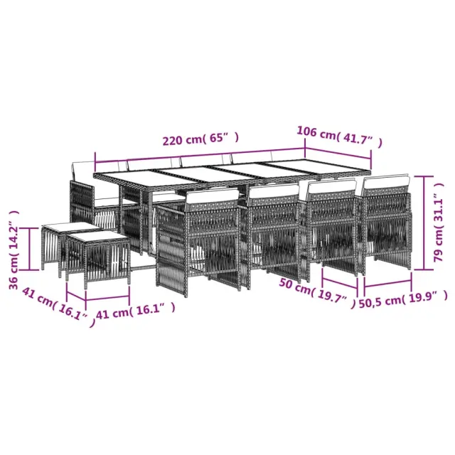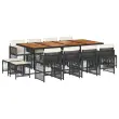 vidaXL Vrtna jedilna garnitura 13-delna z blazinami črn poli ratan