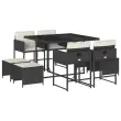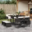 vidaXL Vrtna jedilna garnitura 9-delna z blazinami črn poli ratan