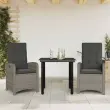vidaXL Vrtna jedilna garnitura 3-delna z blazinami siv poli ratan