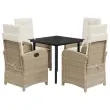 vidaXL Vrtna jedilna garnitura 5-delna z blazinami bež poli ratan