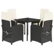 vidaXL Vrtna jedilna garnitura 5-delna z blazinami črn poli ratan
