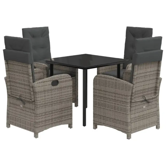 vidaXL Vrtna jedilna garnitura 5-delna z blazinami siv poli ratan