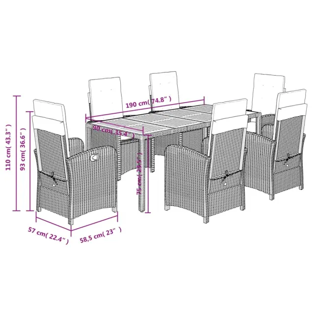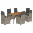vidaXL Vrtna jedilna garnitura 7-delna z blazinami siv poli ratan