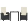 vidaXL Vrtna jedilna garnitura 3-delna z blazinami črn poli ratan