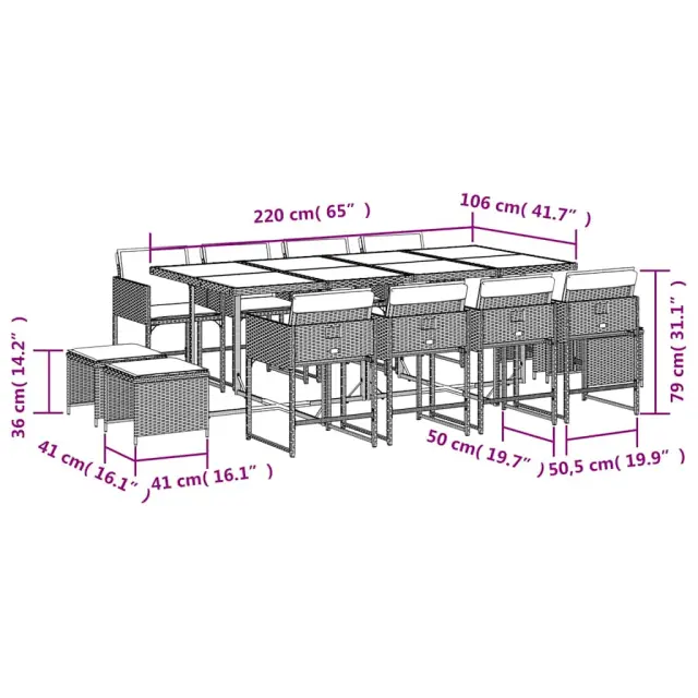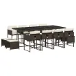 vidaXL Vrtna jedilna garnitura 13-delna z blazinami rjav poli ratan