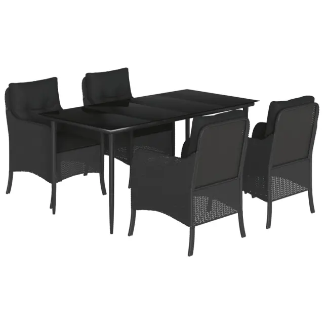 vidaXL Vrtna jedilna garnitura 5-delna z blazinami črn poli ratan
