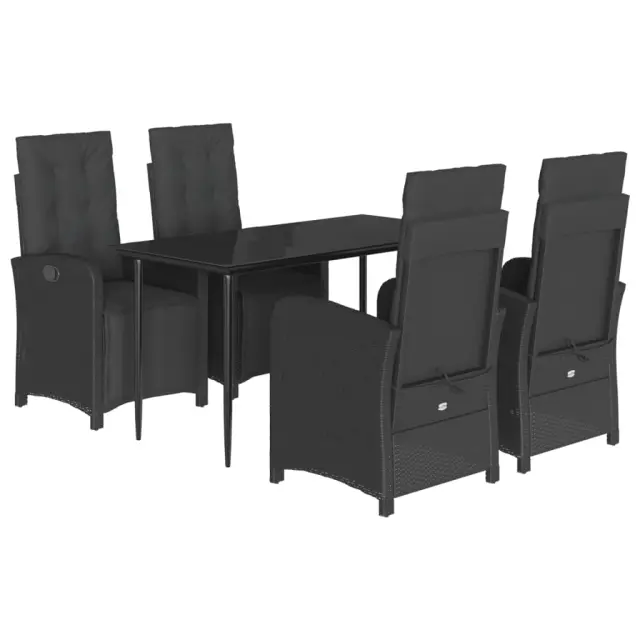 vidaXL Vrtna jedilna garnitura 5-delna z blazinami črn poli ratan