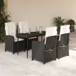 vidaXL Vrtna jedilna garnitura 5-delna z blazinami črn poli ratan