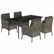 vidaXL Vrtna jedilna garnitura 5-delna z blazinami siv poli ratan