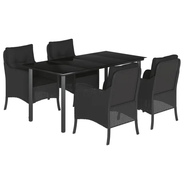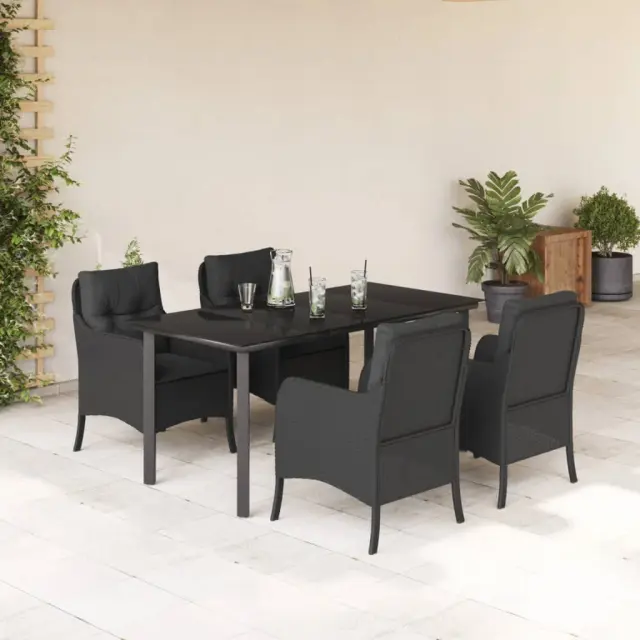 vidaXL Vrtna jedilna garnitura 5-delna z blazinami črn poli ratan