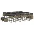 vidaXL Vrtna jedilna garnitura 15-delna z blazinami siv poli ratan