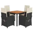 vidaXL Vrtna jedilna garnitura 5-delna z blazinami črn poli ratan