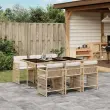 vidaXL Vrtna jedilna garnitura 7-delna z blazinami bež poli ratan