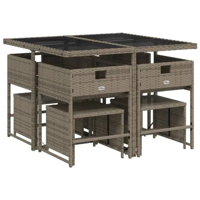 vidaXL Vrtna jedilna garnitura 9-delna z blazinami siv poli ratan