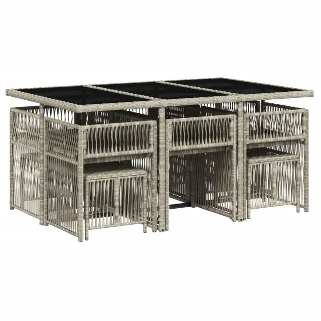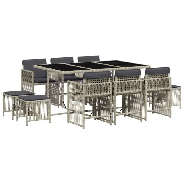 vidaXL Vrtna jedilna garnitura 11-delna z blazinami sv. siv PE ratan