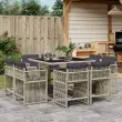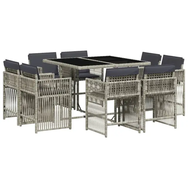 vidaXL Vrtna jedilna garnitura 9-delna z blazinami sv. siv poli ratan