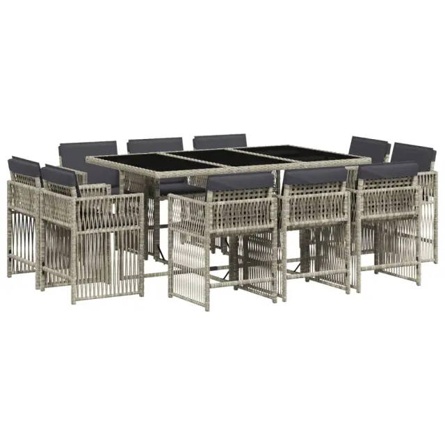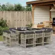 vidaXL Vrtna jedilna garnitura 11-delna z blazinami sv. siv PE ratan