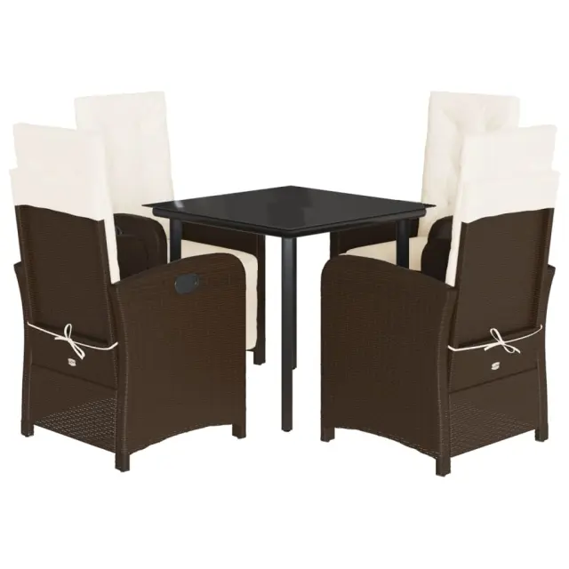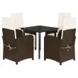 vidaXL Vrtna jedilna garnitura 5-delna z blazinami rjav poli ratan