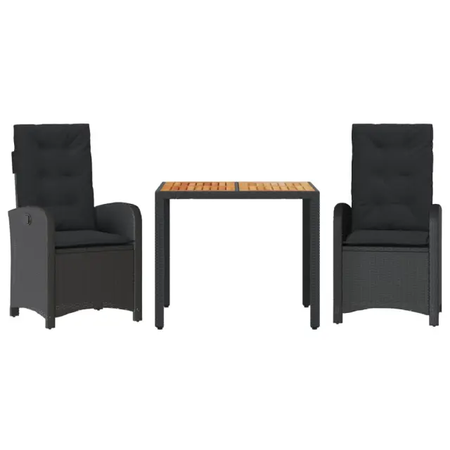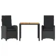 vidaXL Vrtna jedilna garnitura 3-delna z blazinami črn poli ratan