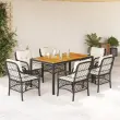 vidaXL Vrtna jedilna garnitura 7-delna z blazinami črna poli ratan