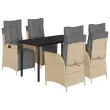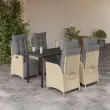 vidaXL Vrtna jedilna garnitura 5-delna z blazinami bež poli ratan