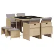 vidaXL Vrtna jedilna garnitura 9-delna z blazinami bež poli ratan