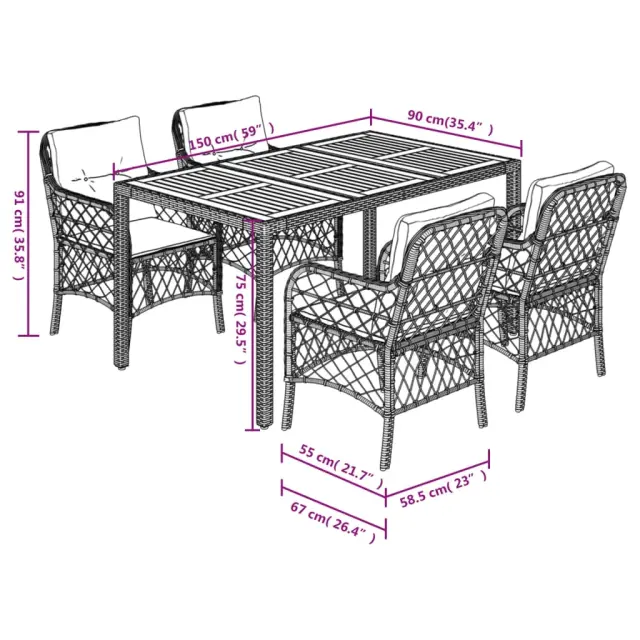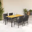 vidaXL Vrtna jedilna garnitura 5-delna z blazinami črn poli ratan