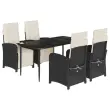vidaXL Vrtna jedilna garnitura 5-delna z blazinami črn poli ratan