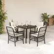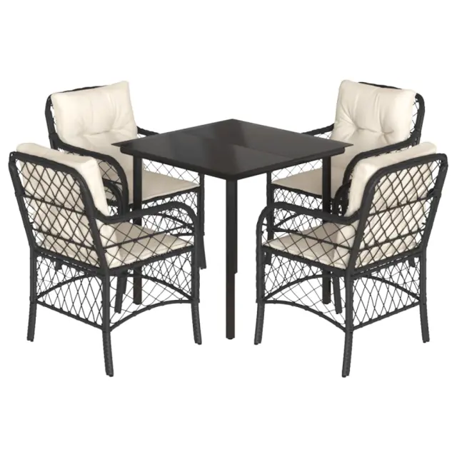 vidaXL Vrtna jedilna garnitura 5-delna z blazinami črn poli ratan