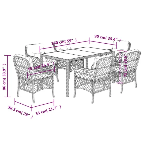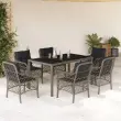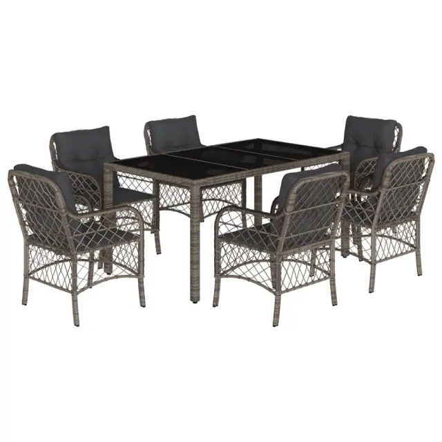 vidaXL Vrtna jedilna garnitura 7-delna z blazinami siv poli ratan