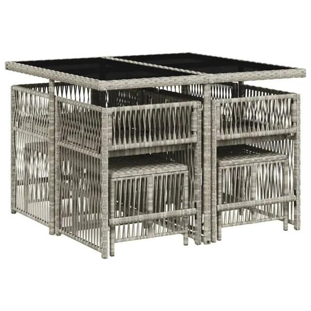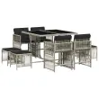vidaXL Vrtna jedilna garnitura 9-delna z blazinami sv. siv poli ratan