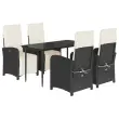 vidaXL Vrtna jedilna garnitura 5-delna z blazinami črn poli ratan