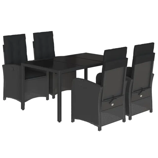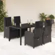 vidaXL Vrtna jedilna garnitura 5-delna z blazinami črn poli ratan