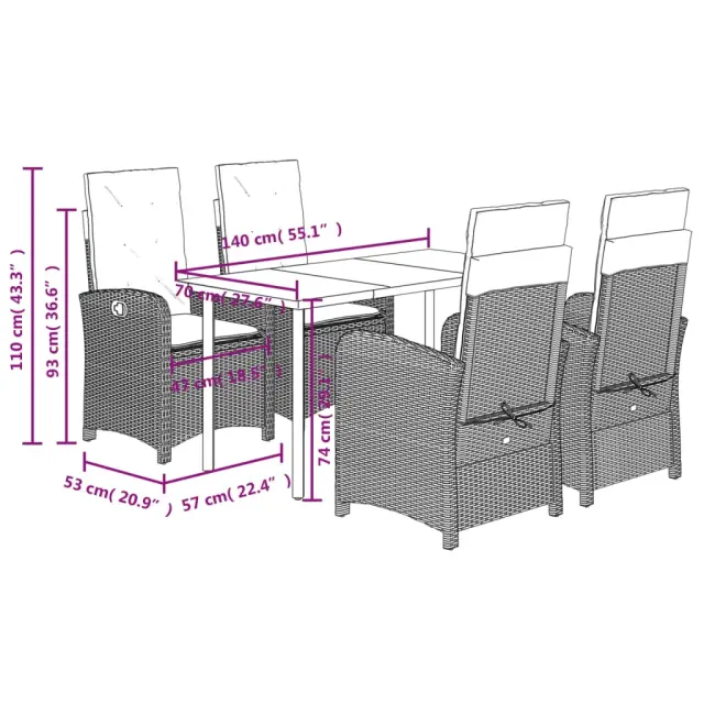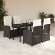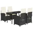 vidaXL Vrtna jedilna garnitura 5-delna z blazinami črn poli ratan