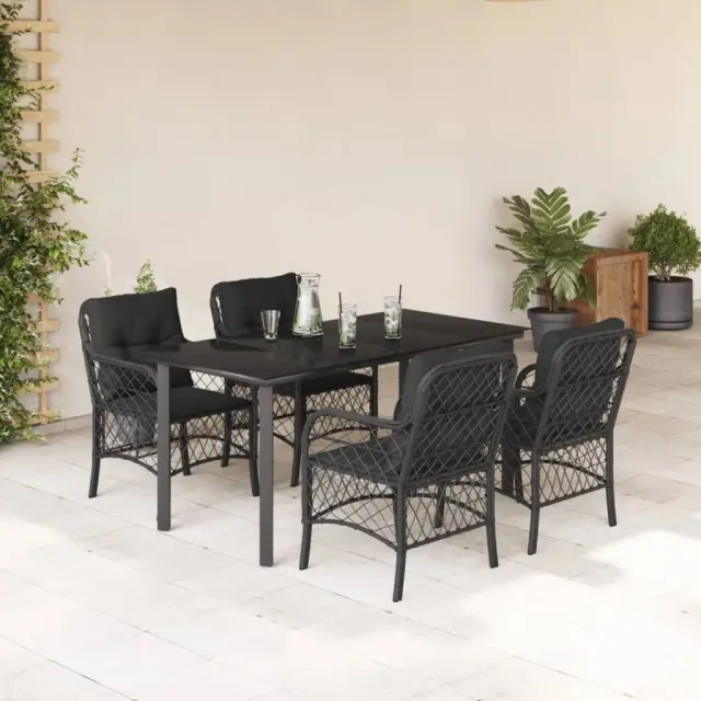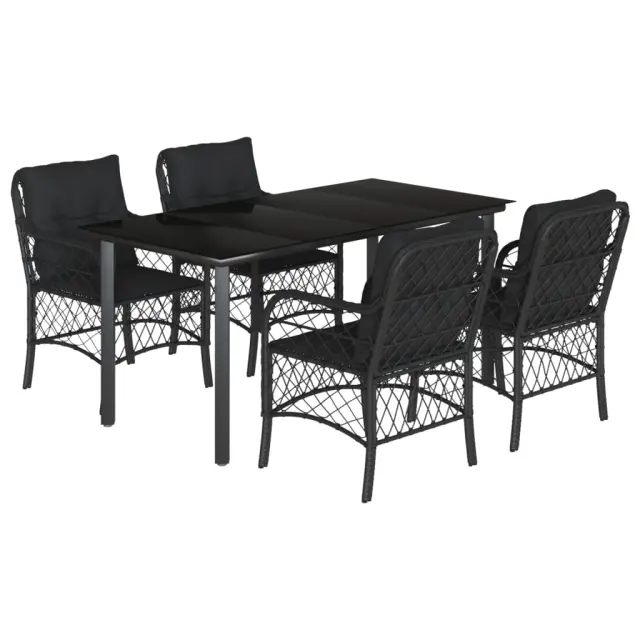 vidaXL Vrtna jedilna garnitura 5-delna z blazinami črn poli ratan