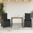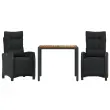 vidaXL Vrtna jedilna garnitura 3-delna z blazinami črn poli ratan