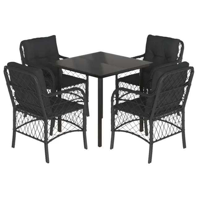 vidaXL Vrtna jedilna garnitura 5-delna z blazinami črn poli ratan