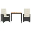 vidaXL Vrtna jedilna garnitura 3-delna z blazinami črn poli ratan