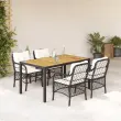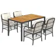 vidaXL Vrtna jedilna garnitura 5-delna z blazinami črn poli ratan