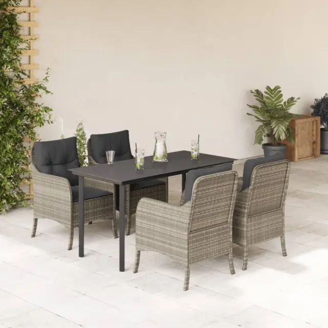 vidaXL Vrtna jedilna garnitura 5-delna z blazinami sv. siv poli ratan