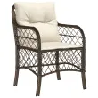 Ta vrtna jedilna garnitura je odlična izbira za večerjo na prostem ali za sprostitev na vrtu, dvorišču ali terasi. Vzdržljiv material: PE ratan, znan tudi kot poli ratan, je močan sintetični material, ki zahteva malo vzdrževanja in je videti kot naravni ratan. Je lahek, enostaven za čiščenje in se zaradi svoje vzdržljivosti in odpornosti na vremenske vplive pogosto uporablja za zunanje pohištvo.Udobno sedenje: To zunanje pohištvo z debelo oblazinjenimi blazinami zagotavlja udobno sedenje.Prevleko je mogoče odstraniti in oprati: Te sedežne blazine imajo odstranljive prevleke za lažje pranje in vzdrževanje.Steklena mizna plošča: Površina zunanje mize je izdelana iz močnega in trpežnega kaljenega stekla, kar omogoča enostavno čiščenje z vlažno krpo in vašemu zunanjemu prostoru doda pridih elegance.Robusten in stabilen okvir: Prašno premazan jeklen okvir zagotavlja, da je vrtno pohištvo močno in stabilno za vsakodnevno uporabo na prostem. Dobro je vedeti:Če želite, da vaše zunanje pohištvo ostane lepo, vam priporočamo, da ga zaščitite z vodoodporno prevleko.UV-odpornoPotrebno sestavljanje: DaMiza:Barva: ČrnaMaterial: Jeklo s prašnim premazom, kaljeno stekloDimenzije: 140 x 70 x 74 cm (D x Š x V)Stol:Barva: RjavaMaterial: PE ratan, jeklen okvir s prašnim premazomDimenzije: 58,5 x 67 x 86 cm (Š x G x V)Velikost sedeža: 48 x 51 cm (Š x G)Višina sedeža od tal (brez blazine): 42 cmVišina naslonjala za roke, merjena od tal: 63 cmMaksimalna nosilnost (na sedež): 110 kgSedežna blazina:Barva: Kremno belaMaterial prevleke: Tkanina (100 % poliester)Polnilo sedežne blazine: PenaPolnilo hrbtne blazine: bombažna vlaknaDimenzije sedežne blazine: 49 x 51 x 3 cm (Š x G x D)Dimenzije hrbtne blazine: 50 x 50 x 11 cm (Š x G x D)Paket vsebuje:1 x Miza4 x Stol4 x Blazina za hrbet4 x Sedežna blazina s snemljivo in pralno prevleko 3212112