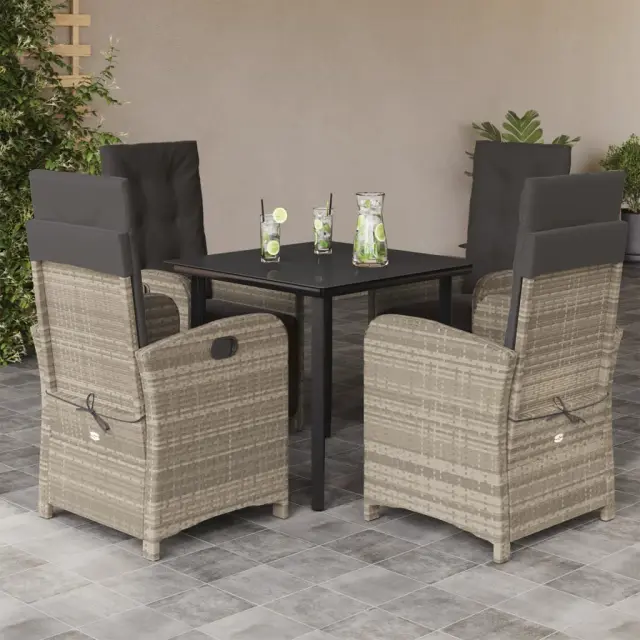 vidaXL Vrtna jedilna garnitura 5-delna z blazinami sv. siv poli ratan