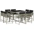 vidaXL Vrtna jedilna garnitura 9-delna z blazinami sv. siv poli ratan