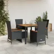 vidaXL Vrtna jedilna garnitura 5-delna z blazinami črn poli ratan