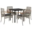 vidaXL Vrtna jedilna garnitura 5-delna z blazinami siv poli ratan