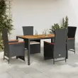 vidaXL Vrtna jedilna garnitura 5-delna z blazinami črn poli ratan