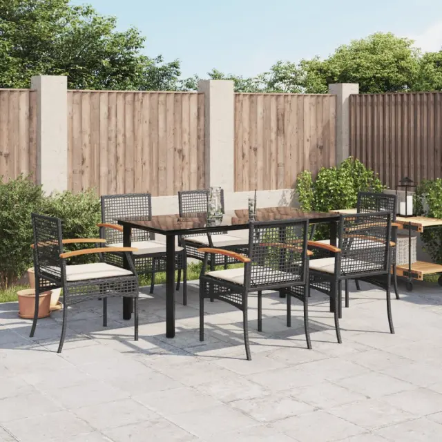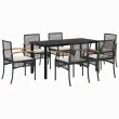 vidaXL Vrtna jedilna garnitura 7-delna z blazinami črna poli ratan